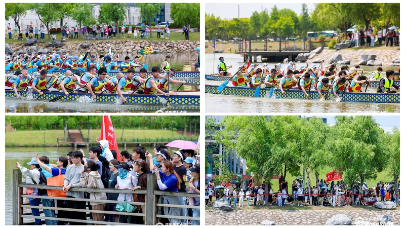 在这场端午盛宴中,校友们置身于龙舟的欢腾与鼓声的激昂中,深刻感受到了同舟同心的默契与团结。每一次热血沸腾的划桨、每一声心潮澎湃的呐喊,都凝聚着校友们对母校深切的拳拳之心、对未来的美好期盼和对永不止步的豪情壮志。法律行业校友会理事胡志强激情洋溢地分享了与同伴们携手并进的激动心情,并表示雨中的奋力划桨、紧密协作,不仅考验了选手们的意志与技能,更为比赛增添了诗意与独特韵味,获得了诸多宝贵的体验与收获。来自南通校友会的吴寅嵩校友同样深有感触,强调参与此次校友龙舟赛具有特别的意义。他提到,华理南通校友紧密团结,心心相印,始终铭记母校的辛勤培育之恩,衷心祝愿母校能够持续传承辉煌,弦歌不辍,迈向更加辉煌的新征程。