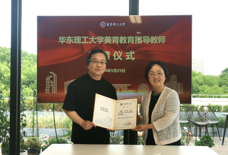 会上,万永菁为阮竣颁发华东理工大学美育教育指导教师聘书,希望他能为华理丰富美育教育的内涵,在传承红色文化的过程中激发学生的创新意识,充分运用自己的专业知识,推动红色文化创造性转化、创新性发展。