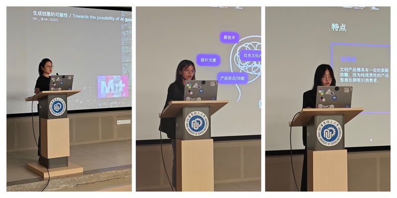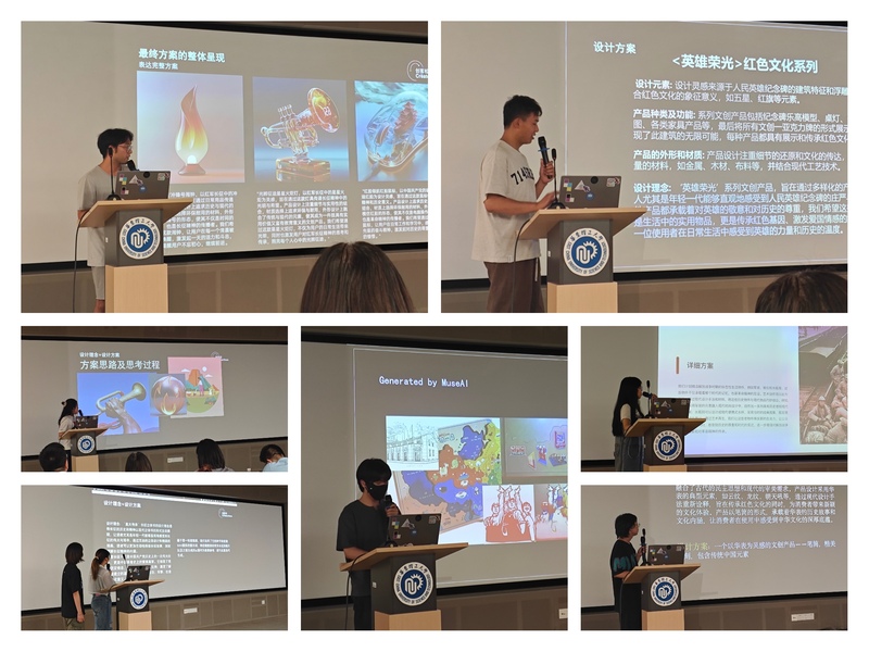 随后50余位参与学生在此基础上分组展开了红色文创设计创作实践,并进行了汇报展示。