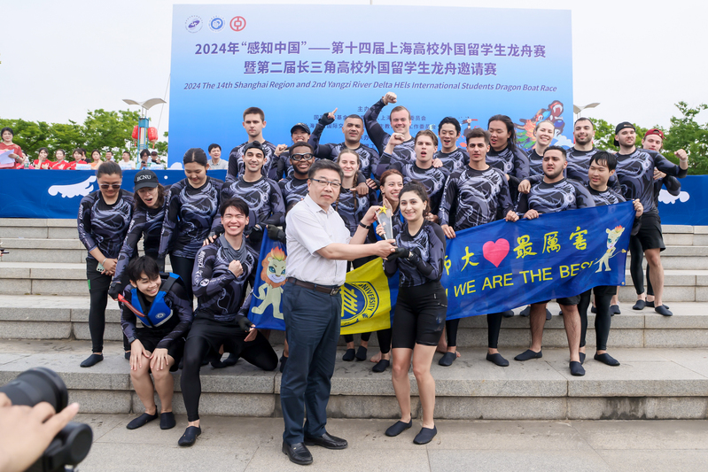 “喧江雷鼓鳞甲动,三十六龙衔浪飞。”5月25日,华东理工大学奉贤校区通海湖上热闹非凡。2024年“感知中国”——第十四届上海高校外国留学生龙舟赛暨第二届长三角高校外国留学生龙舟邀请赛隆重开赛。34支队伍、106个国家、765名参赛选手,来自复旦大学、南京理工大学、浙江大学、中国科学技术大学等江浙沪皖地区的留学生龙舟队挥桨竞逐,吸引了数千名观众汇集在通海湖畔一睹盛况。