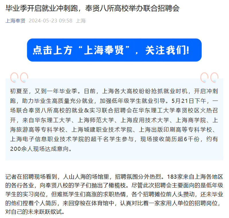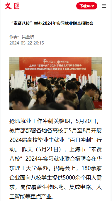【文汇APP】“奉贤八校”举办2024年实习就业联合招聘会