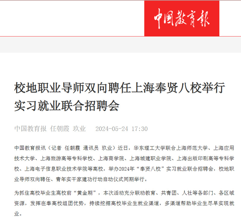【中国教育报客户端】校地职业导师双向聘任上海奉贤八校举行实习就业联合招聘会