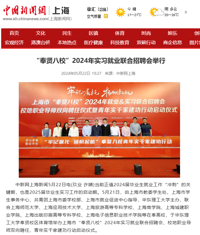 【中国新闻网】“奉贤八校”2024年实习就业联合招聘会举行