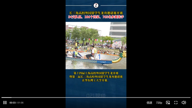 5月25日,第十四届上海高校外国留学生龙舟赛暨第二届长三角高校外国留学生龙舟邀请赛在@华东理工大学 开赛。共有34支队伍、106个国家、765名参赛选手,来自复旦大学、南京理工大学、浙江大学、中国科学技术大学等江浙沪皖地区的留学生龙舟队参加。据悉,2023年该赛事首次扩展至江浙皖等长三角地区。今年长三角地区的参赛队伍进一步扩大。最终华东师范大学摘得桂冠,亚季军分别由上海海事大学和南京理工大学获得。