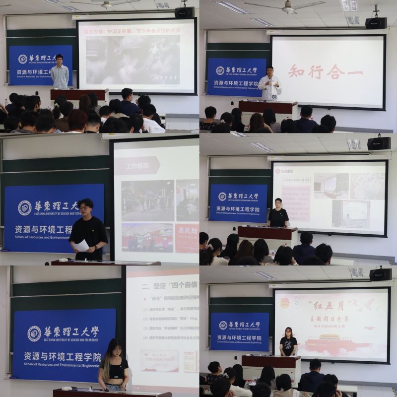 为深入学习宣传贯彻习近平总书记五四青年节对全国广大青年寄语精神,继承和发扬五四精神,资环学院团委在奉贤校区举办“强国建设,青春挺膺”主题团日暨“读懂中国”主题活动。特邀资环学院原党委书记程里、资环学院原能源系主任鲁锡兰出席,资环学院党委副书记曹娜、团委书记曹悦、奉贤校区本科生党支部书记王青、团委副书记李俊呈及各团支部团员代表等100余人参加活动。活动由资环学院团委组织部负责人胡子豪主持。