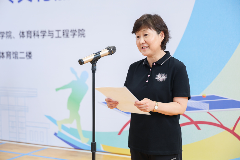 王慧锋副校长出席开幕式并致辞,她希望以此次比赛为契机,传承并发扬我校优良的“乒乓文化”,鼓励引导广大师生以强健的体魄投身学校科研创新事业,通过体育赛事赋能导学关系,为国家和社会培养德智体美劳全面发展的优秀人才。