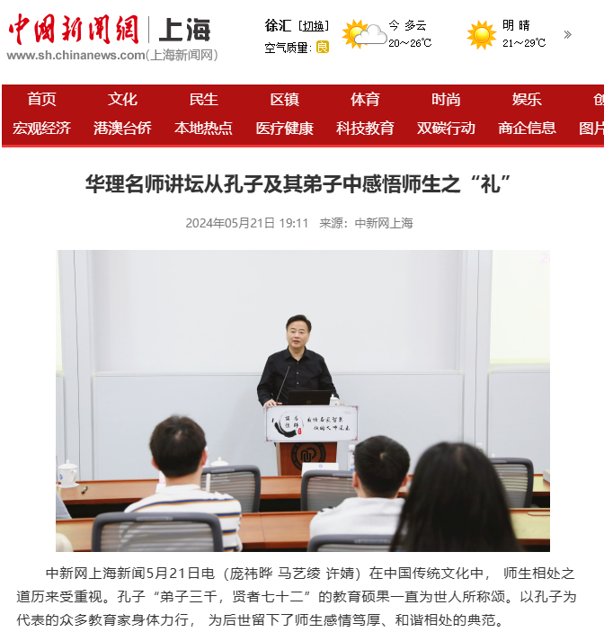 【中国新闻网】华理名师讲坛从孔子及其弟子中感悟师生之“礼”
