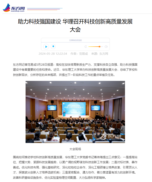 【东方网】助力科技强国建设 华理召开科技创新高质量发展大会