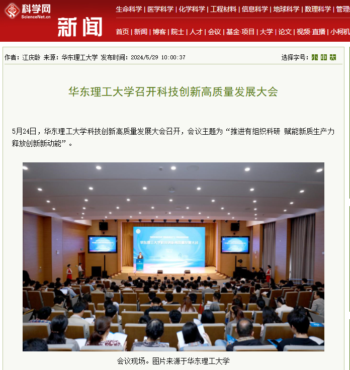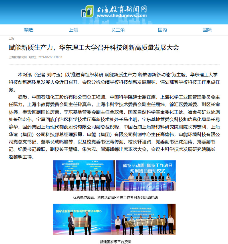 【上海教育新闻网】赋能新质生产力,华东理工大学召开科技创新高质量发展大会