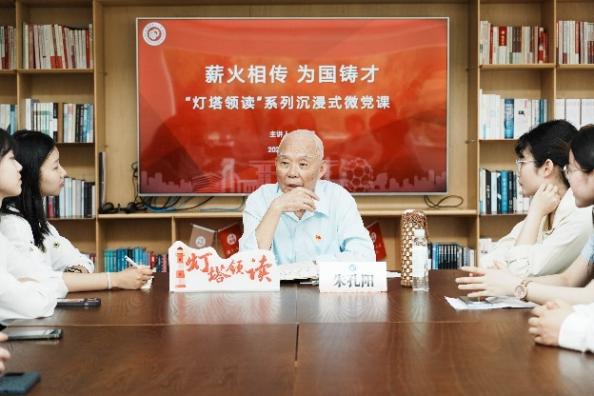 6月13日,“两弹一星”老党员、华东理工大学1960级老校友朱孔阳重回母校,为青年学生党员上了一堂生动的沉浸式微党课。一年前,华东理工大学的“00后”党员前往上钢新村街道“蘑菇云”党支部,聆听朱孔阳同志60年前从华理毕业毅然投身大西北,从事“两弹一星”工程的故事,共同开启“灯塔领读”系列沉浸式微党课的第一讲。今年,华东理工大学党委研究生工作部联合社会与公共管理学院、化学与分子工程学院邀请朱孔阳同志重回母校,为学生党员再上“灯塔领读”系列沉浸式微党课。