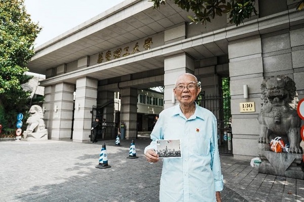 图说:“两弹一星”老党员、华东理工大学1960级老校友朱孔阳同志重回母校,为学生党员再上“灯塔领读”系列沉浸式微党课 采访对象供图(下同)