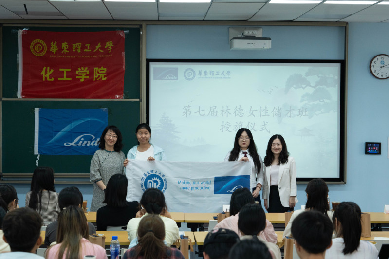 6月18日下午,华东理工大学第七届“林德女性储才班”开班仪式在奉贤校区C201室举办。出席本次活动的嘉宾有林德大中华区副总裁上官希佳、人力资源经理赵路、人力资源副总监楼红梅、人力资源副总监张燚,以及我校化工学院党委副书记高艺霞、学院辅导员等,60余名同学共同参与。活动由化工学院学生会外联部部长贺奕玮主持。