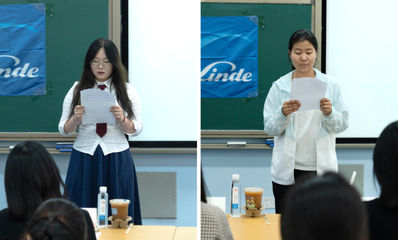 优秀学员代表石明怡、新学员代表杨璐畅相继进行了分享。石明怡讲述了自己在女性储才班活动时的精彩经历与深刻感悟,感谢林德与学校为同学们提供了优质的成长平台。杨璐畅表达了对即将开展的女性储才班系列课程的期待,表示将与全体学员一起努力,做到学有所思、有所悟、有所获。