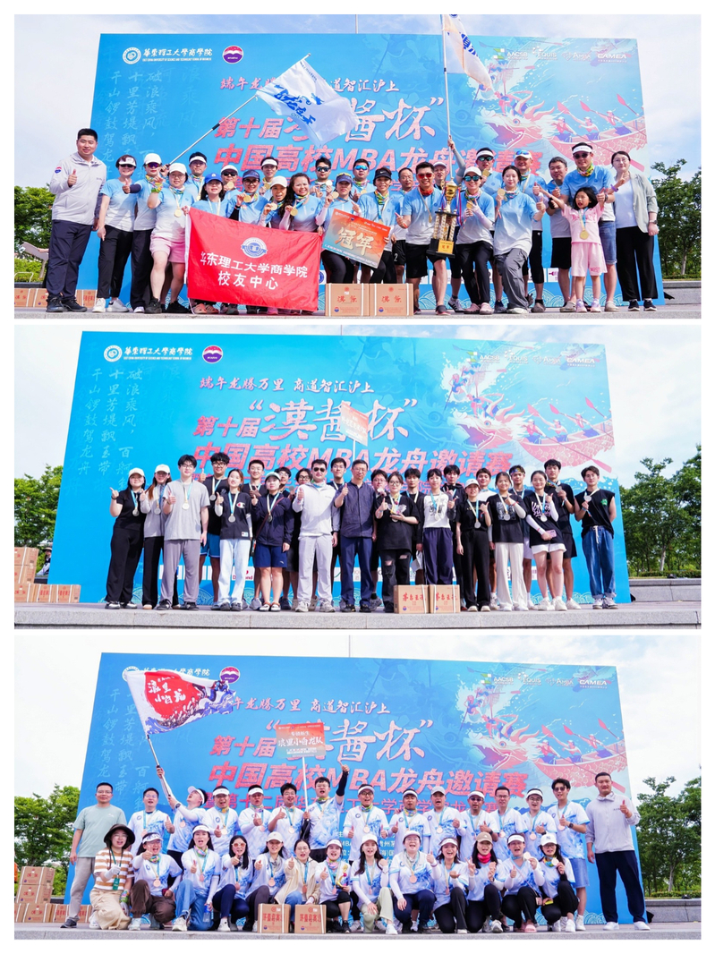 经过激烈角逐,最终,华东理工大学“飞龙在天一队”获得校际组冠军,复旦大学“复旦嗨誓队”获得了校际组亚军,上海理工大学“上理先锋龙舟队”获得了校际组季军;商学院校友代表队“飞龙在天二队”获得了校内组冠军,本科生“终究还是我们队”获得了校内组亚军,专硕新生的“浪里小白龙队”获得了校内组季军。