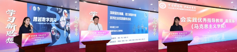 出征仪式上,校团委副书记魏星介绍了2024年暑期社会实践的基本情况。2023年“知行杯”上海市大学生社会实践项目大赛特等奖团队代表李文婷讲述了同学们在实践中如何以专业素养为依托,通过高质量的社区服务供给助力老年群体跨越数字鸿沟,展现国际化大都市发展背景下的人文关怀底蕴。社会实践优秀指导教师代表机械与动力工程学院刘懿谦分享了团队历代成员们致力于攻克油田生产水处理技术的卡脖子难题,为守牢国内原油稳产2亿吨安全红线、海洋万亿规模资产保值贡献华理力量。社会实践优秀指导教师代表马克思主义学院崔美娜介绍了马克思主义学院以探索问题导向、系统设计、数字赋能、全面覆盖的育人新模式和以“思政V课堂”为核心、实践教学基地为载体、实践教学中心为抓手的实践教学体系。