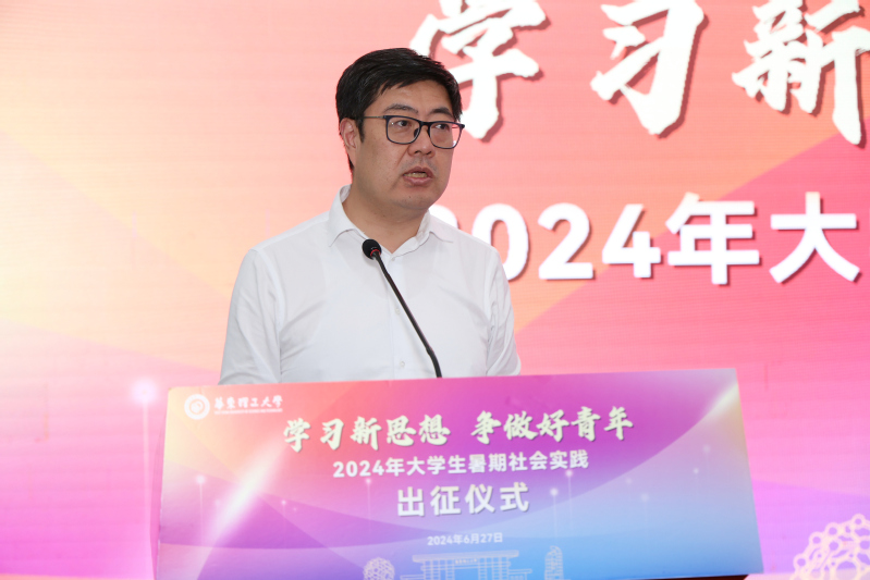 学习新思想,争做好青年。6月27日,2024年华东理工大学大学生暑期社会实践出征仪式在奉贤校区通海厅举行。校党委副书记沈海涛为大学生暑期社会实践授总旗并讲话。党委办公室、校长办公室、党委宣传部、党委教师工作部、党委学生工作部、党委研究生工作部、校友与发展联络处、教务处、马克思主义学院、校团委相关负责同志,哔哩哔哩、泰坦科技等相关企业代表,各学院指导教师代表、团委书记以及社会实践团队代表参加出征仪式。