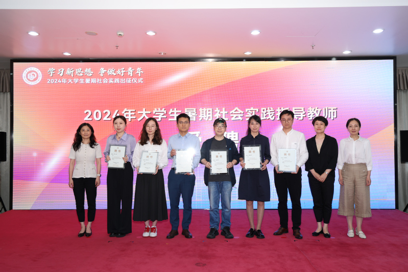 校友与发展联络处处长王芝眉、校党委教师工作部副部长耿琰老师、马克思主义学院党委副书记、纪委书记卢杨为2024年大学生暑期社会实践指导教师代表颁发聘书。