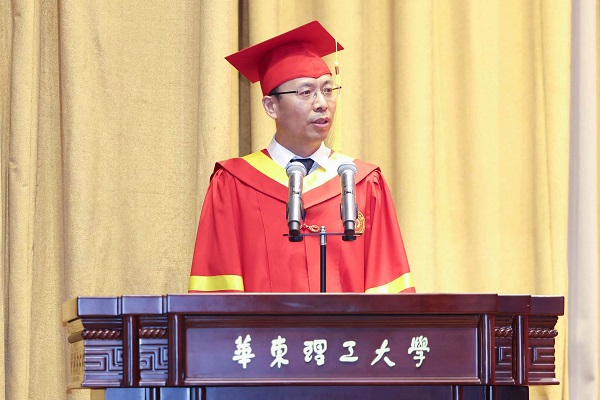 图说:华东理工大学校长轩福贞在毕业典礼上讲话 采访对象供图