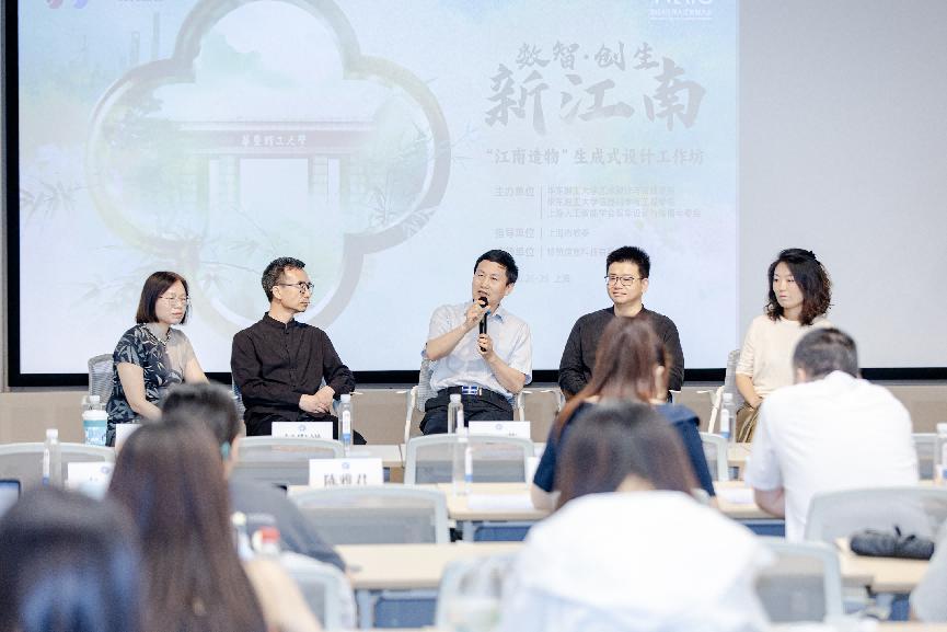 在圆桌论坛环节,华东理工大学社会与公共管理学院副院长杨发祥教授,上海市科学与艺术学会监事长朱琪,华东理工大学艺术设计与传媒学院副教授闫爱宾、教师周洁等4位嘉宾以“何以江南”为主题进行了热烈的观点分享,不仅为大家描绘了江南文化中具有高识别度的文化基因,也为大家提供了一个塑造“新江南”设计的新路径。