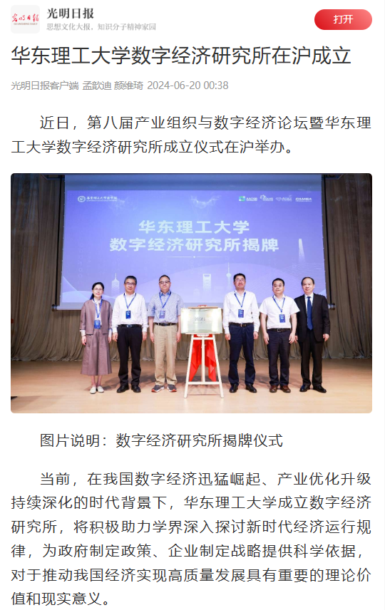 【光明日报客户端】华东理工大学数字经济研究所在沪成立