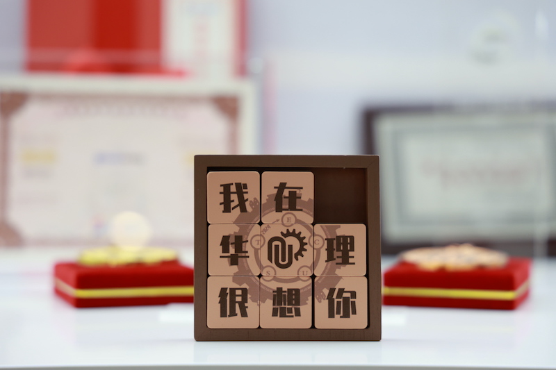 录取通知书礼盒中还有华容道小游戏——每个方块上刻有汉字与不完整的齿轮图案,需要通过观察布局、推理步骤、移动方块,还原正确的文字与图形。这份礼物集逻辑性与娱乐性于一体,寓意着同学们在华理开拓思维、增进学识、臻于卓越。