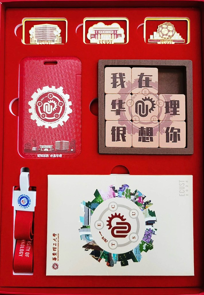 黄铜书签、卡套、明信片……录取通知书礼盒内还有华理师生设计的精致美观、实用悦目的文创周边,将陪伴同学们度过华理的学习生活。