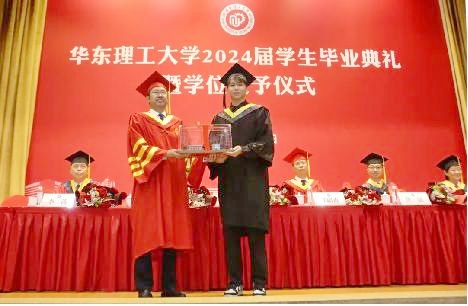 华东理工大学党委书记蒋传海代表学校接受2024届全体毕业生赠送纪念品 照片由校方提供