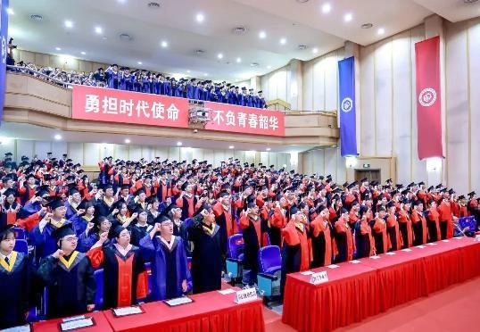 华东理工大学全体毕业生在材料科学与工程学院本科毕业生、2024年云南选调生陈婷婷的带领下,集体宣读毕业誓词《青春篇章》,誓言提出,要坚定不移听党话、跟党走,刚健有为,自信自强,奋力书写为中国式现代化挺膺担当的青春篇章。