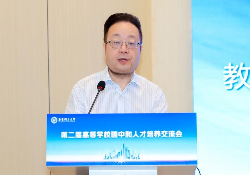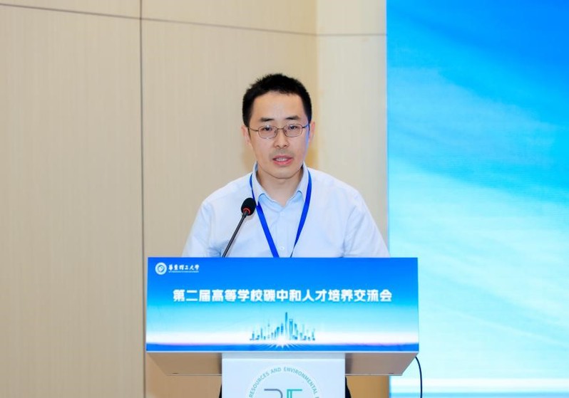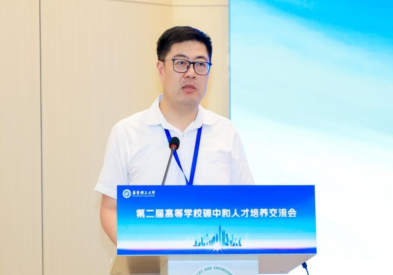 7月7日,“第二届高等学校碳中和人才培养交流会”在我校徐汇校区隆重举行。教育部高等学校环境科学与工程类专业教学指导委员会(以下简称“环境专业教指委”)主任委员、清华大学贺克斌院士,环境专业教指委副主任委员、生态环境部环境规划院王金南院士,高等教育出版社副总编辑阳化冰,同济大学段宁院士、徐祖信院士,中国石化工程建设有限公司孙丽丽院士,中国石油大学(北京)徐春明院士,中国石化上海石油化工研究院杨为民院士及我校党委常委、副校长王慧锋,资源与环境工程学院院长汪华林院士出席会议。会议开幕式由我校党委副书记沈海涛主持。