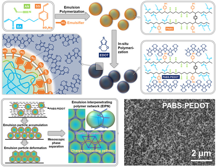 图片说明:PABS:PEDOT粘结剂的合成过程、成膜行为及形貌