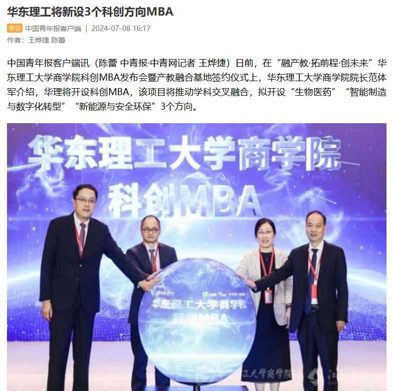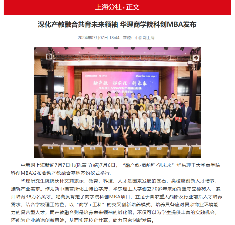 【中国新闻网】深化产教融合共育未来领袖 华理商学院科创MBA发布
