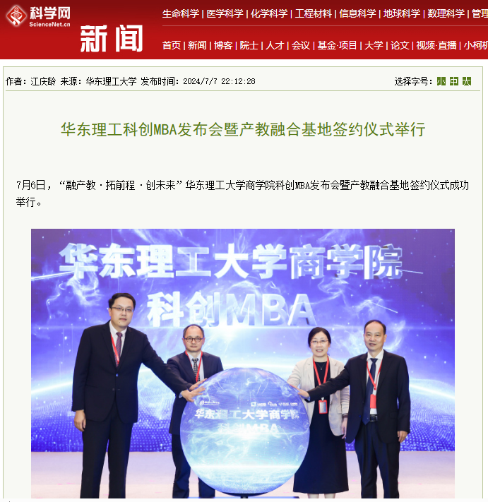 【科学网】华东理工科创MBA发布会暨产教融合基地签约仪式举行