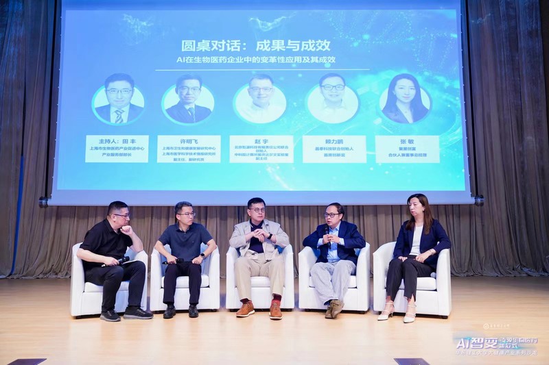 在成果与成效环节中,一场圆桌讨论聚焦了AI技术在生物医药领域的实际成效及未来前景。上海市生物医药产业促进中心产业服务部部长田丰担任圆桌主持,引领了一场关于AI技术在生物医药领域的深刻对话。上海市卫生和健康发展研究中心(上海市医学科学技术情报研究所)副主任许明飞,北京哲源科技有限责任公司联合创始人、中科院计算所图灵达尔文实验室副主任赵宇,晶泰科技联合创始人、首席创新官赖力鹏,复星创富合伙人兼董事总经理张敏,深入探讨了AI技术在生物医药领域的实际成效和未来前景。专家们一致认为,AI技术的集成和应用不仅加速了新药研发进程,提高了医疗服务质量,也为生物医药产业的持续创新和转型提供了强大动力。