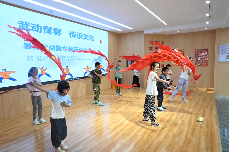 为贯彻落实习近平总书记五四青年节对全国广大青年寄语和对学校思政课建设作出的重要指示精神,用好社会大课堂,在社会实践中坚定理想信念、强化责任担当。7月29日,华东理工大学2024年“万生进千村百企”体育学院“筑体寻康”社会实践团赴云南省寻甸回族彝族自治县开展“优秀传统体育文化浸润健康心灵”主题社会实践活动,并联合共青团寻甸县委、寻甸绿芽志愿者协会共同举办“武动青春传承文化”暑期公益夏令营。