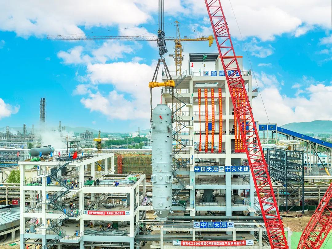 ▲多喷嘴对置式粉煤气化炉吊装