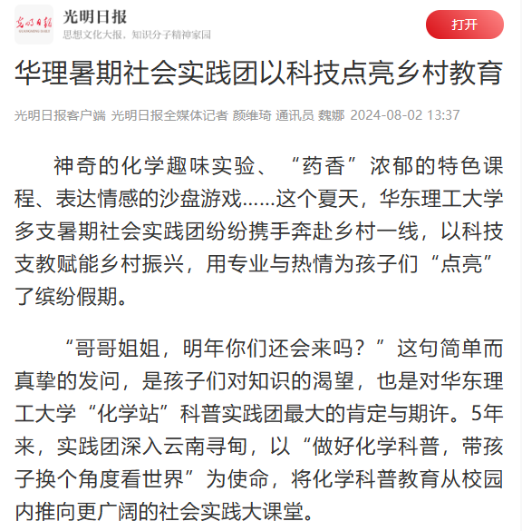 【光明日报客户端】华理暑期社会实践团以科技点亮乡村教育
