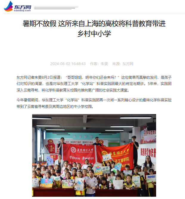 《青年报》:华东理工大学社会实践团暑期奔赴基层一线,以科技之光点亮乡村教育