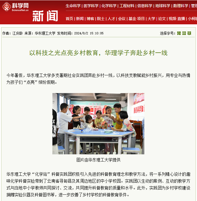 【科学网】以科技之光点亮乡村教育,华理学子奔赴乡村一线