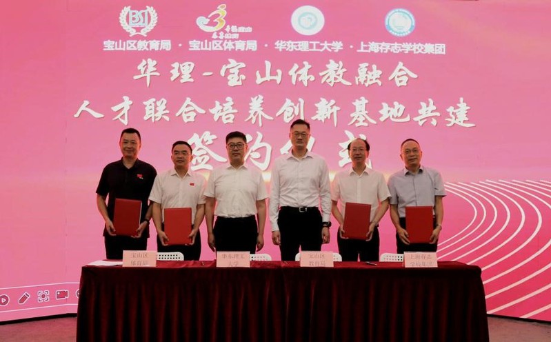 签约仪式上,四方代表共同签署了“华理-宝山体教融合人才联合培养创新基地”共建协议。根据协议内容,四方将在优秀体育人才贯通培养、重点体育项目建设、高水平运动队合作办训、品牌体育赛事与国际交流、体育科研与实验项目优先试点等多个领域开展深度合作,共同搭建体教结合的体育项目建设与发展新平台,建立优秀体育人才的联合培养新机制。