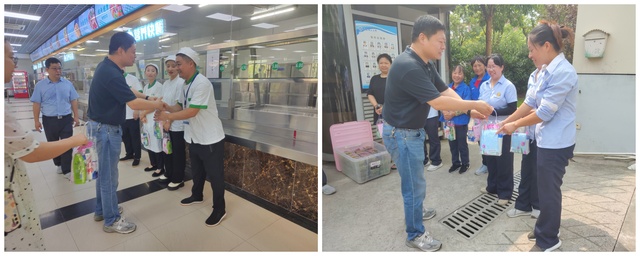 图片说明:慰问食堂、学生公寓等后勤一线岗位员工