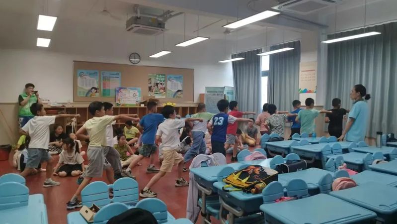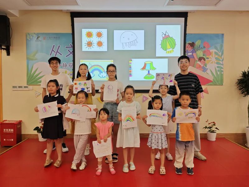 数学学院的8名志愿者在徐汇区天平街道的暑托班中,参与到了体能、艺术与开阔视野等方面的课程设计。