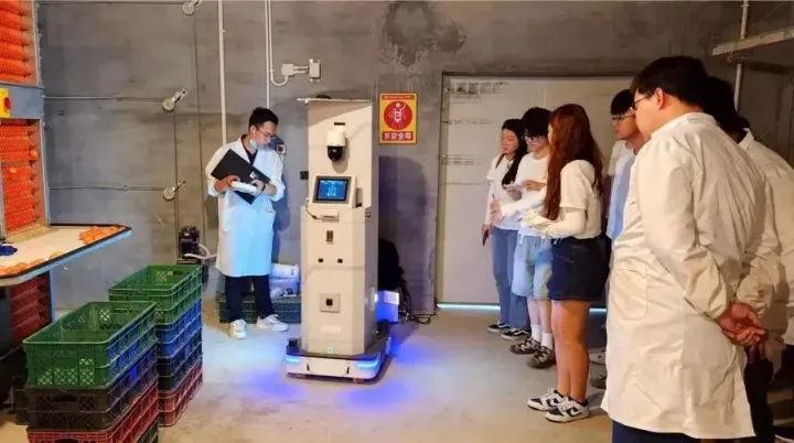 为探索养殖业疑难问题的解决方案,深入学习智慧养殖模式,实践团成员又来到位于龙口市的三木养殖专业合作社进行参观学习,近距离了解巡检机器人和自动化技术在养殖场内的实际应用。