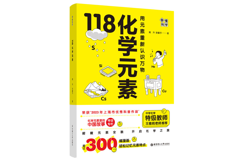 图书简介:《118化学元素》以化学元素周期表为序,通过300余幅精致的漫画,细致讲解出118种化学元素知识,包括元素在周期表中的序列位置、基本信息介绍、重要化学反应方程式、生活中的应用等。书中将这些元素在中国的前沿研究、开发、使用情况做了专门的说明,使图书更具中国特色。该书出版两年来荣获了“2023年上海市优秀科普图书”奖,入选了教育部“2023年全国中小学图书馆(室)推荐书目”,已重印20余次,总印数达41万册。