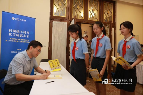 上海书展期间,一大群中学生拿着《118化学元素》排起了长队,华东理工大学戴升教授接过学生的书籍,郑重地在上面签名,写下给孩子们的寄语“永葆对探索自然的好奇心”。
