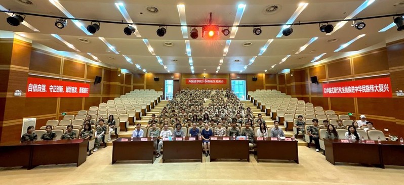 9月12日下午,外国语学院在奉贤校区敬贤堂举行2024级本科新生见面会。外国语学院党委书记王喆,院长赵宏,副院长韦晓保,军训团七营长程翔,军训团教官代表张卓立,系主任、班导师代表、各年级辅导员以及2024级135名本科生新生参加了见面会。会议由外国语学院党委副书记樊俊主持。