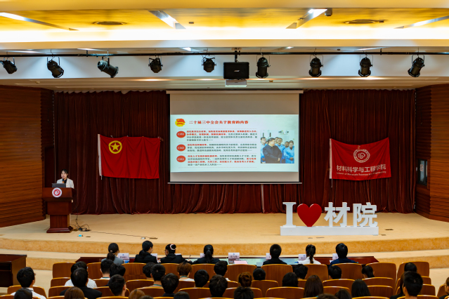 为深入学习贯彻党的二十届三中全会精神和习近平总书记关于青年的重要讲话精神,进一步加强学生骨干队伍建设,充分发挥学生组织的桥梁、纽带作用,促进各部门交流与合作,材料科学与工程学院于10月22日在奉贤校区敬贤堂召开2024-2025年度团学骨干聘任大会暨团学组织培训会。材料学院党委副书记戴诚安、团委书记张雪薇、2023级辅导员李廷雨、2024级辅导员佘蕴芮出席会议,团学骨干聘任大会由学委会主任张涵琪主持,材料学院全体团学骨干及志愿者参加本次活动。