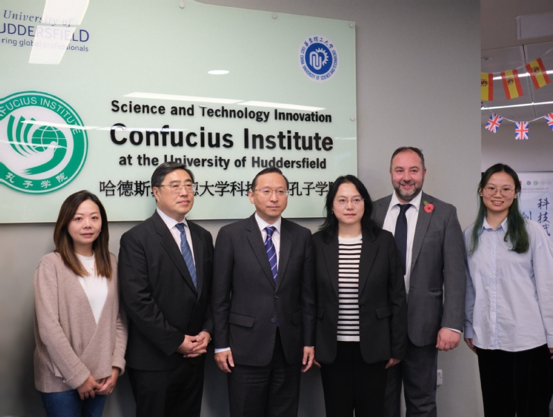近日,中国驻曼彻斯特总领馆唐锐总领事应邀访问哈德斯菲尔德大学,调研我校与哈德斯菲尔德大学共建的科技创新孔子学院,深入了解学院工作开展情况,梁岩参赞陪同调研。