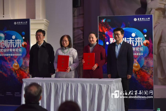 现场,在华东理工大学艺术设计与传媒学院院长汪军、上海报业集团东方网创新研究执行院长朱琪的见证下,华东理工大学艺术设计与传媒学院副院长傅蓉蓉与上海报业集团东方网智慧社区中心主编白丹熔共同签订了华东理工大学——东方数字社区发展有限公司研究生产学研实践基地合作协议。双方将通过建立产学研实践基地,加强联系,发挥优势,促进智能设计与传播领域的深入合作。