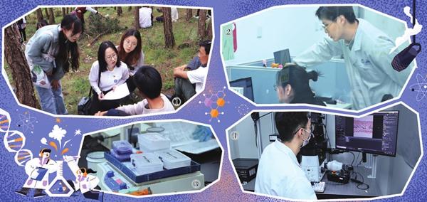华东理工大学“新药梦之队”里,负责不同研究方向的学生在各自岗位上做实验、写分析报告等。①受访者供图 ②③④俞佳一/摄