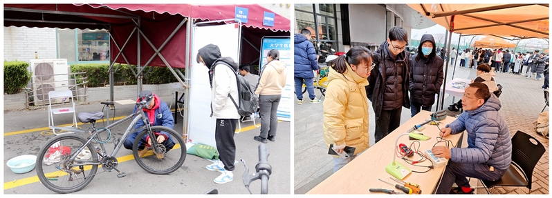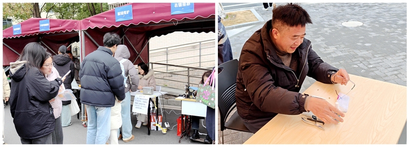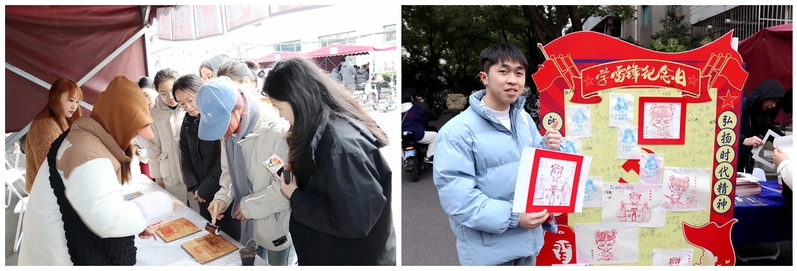 活动现场,后勤的同志热情高涨,纷纷发挥自身特长。动修师傅、宿管阿姨和商铺店主手法娴熟,技术精湛,让一件件“罢工”的物品重新焕发生机,让一个个“烦人”的生活痛点轻松化解。校医院的医护人员则设立了健康咨询台,不仅为师生测量血压血氧进行健康义诊,还贴心讲解医保政策,分享线上就医操作指南、登记备案、报销流程等。现场还设置了互动体验区,低碳节能和垃圾分类有奖问答,让低碳节能理念与绿化环保意识浸润人心,“哪吒版”非遗手工板印画,让师生在感受传统文化之余将雷锋精神传承发扬光大。后勤同志们的奉献与爱心、专业与细心赢得了师生广泛赞誉。